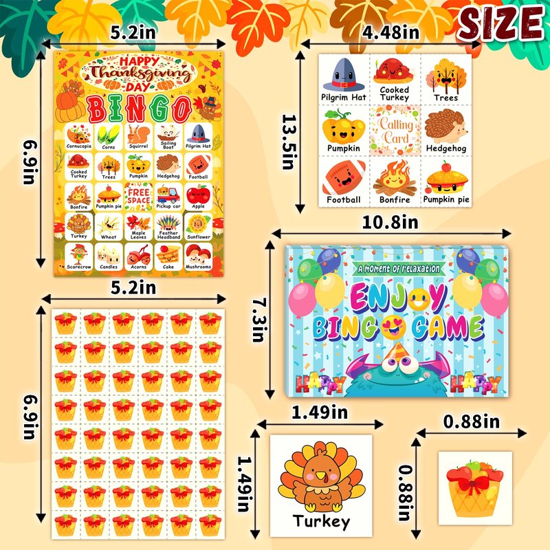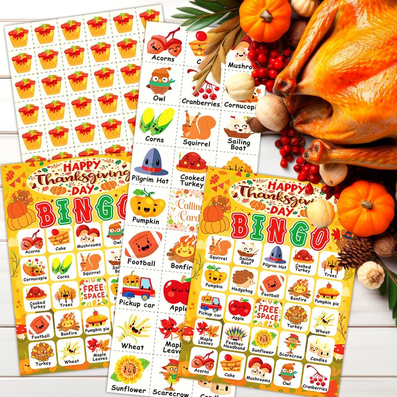 - Thanksgiving Bingo Sets: Experience the Joy of Thanksgiving with our Adorable Bingo Game!Perfect for family, friends, and classmates, this game accommodates up to 24 players, creating a vibrant and harmonious atmosphere for everyone