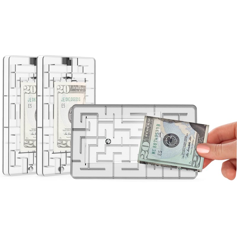 - UNIQUE CASH HOLDER unlike anything you've seen before. Not a sleeve or a folder, this money maze is a clear plastic vault with a puzzle maze inside. In order to open the maze box and get to the cash, the recipient of your gift first needs to turn the puzzle this way and that to roll the metal ball to the other side! It's challenging yet simple enough for any adult or child to do successfully.