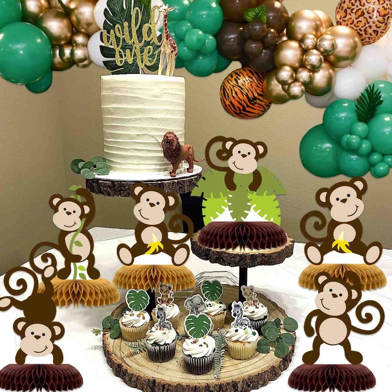 hongpar’s monkey honeycomb table centerpieces is a perfect touch for jungle party decorations.