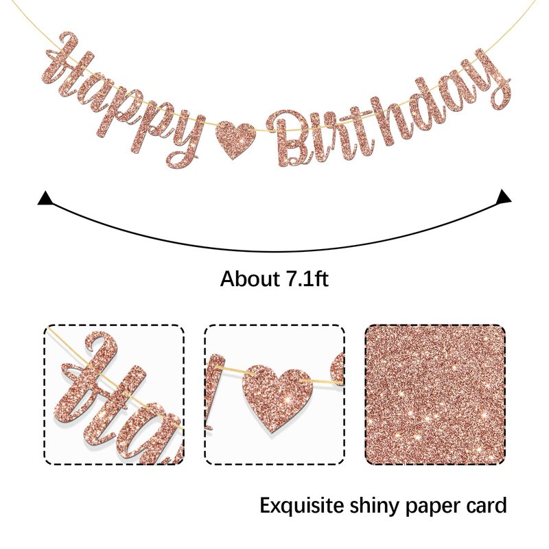 MonMon & Craft Happy Birthday Banner/Children Adults Boys Girls Birthday Party Decor/Birthday Party Decorations Rose Gold Glitter