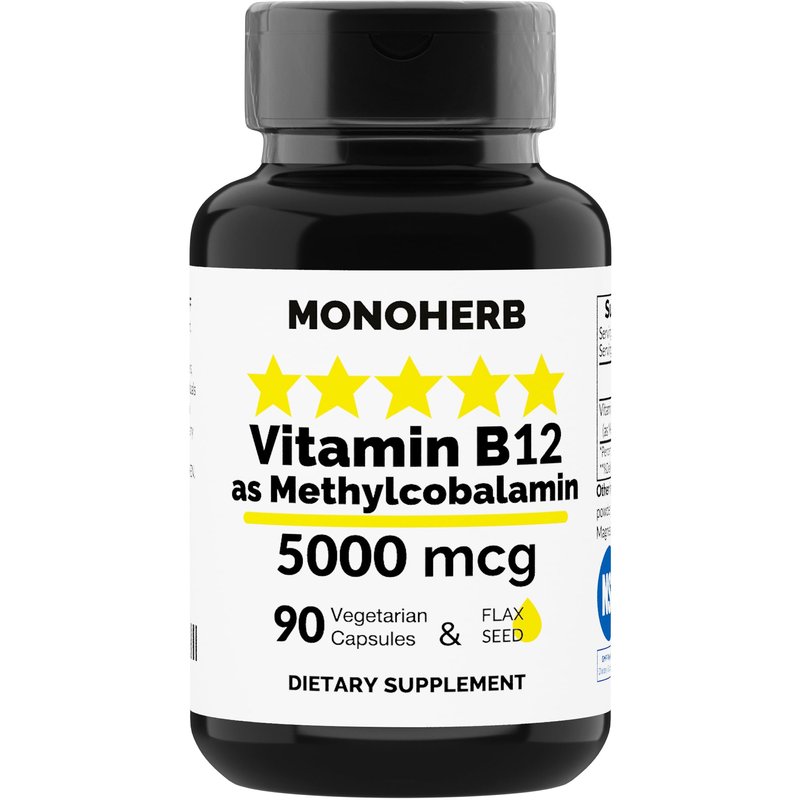 MONOHERB Vitamin B12 Methylcobalamin 5000 mcg - 90 Vegetarian Capsules - B12 Methyl