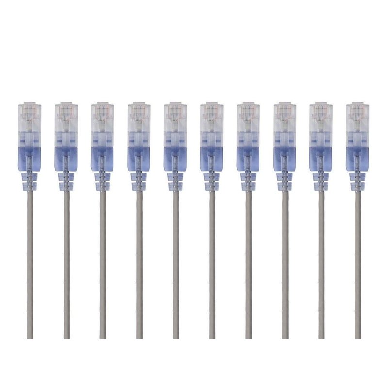 Monoprice Cat6A Ethernet Patch Cable - Snagless RJ45, 550Mhz, 10G, UTP, Pure Bare Copper Wire, 30AWG, 10-Pack, 1 Feet, Blue - SlimRun Series