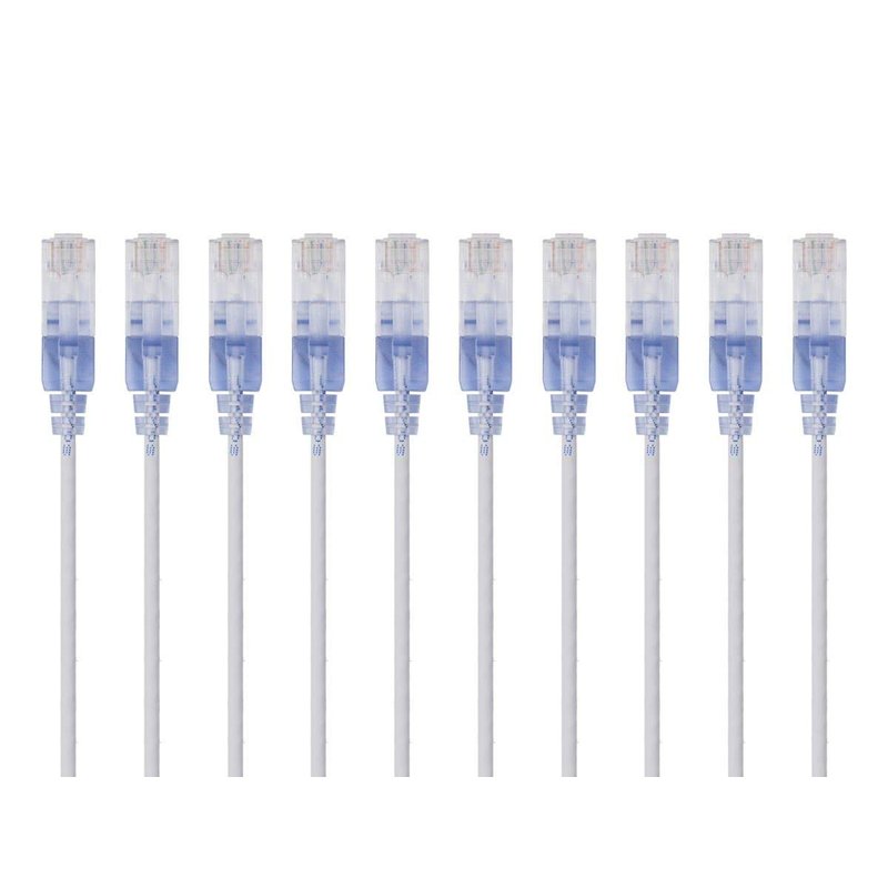 Monoprice Cat6A Ethernet Patch Cable - Snagless RJ45, 550Mhz, 10G, UTP, Pure Bare Copper Wire, 30AWG, 10-Pack, 1 Feet, White - SlimRun Series