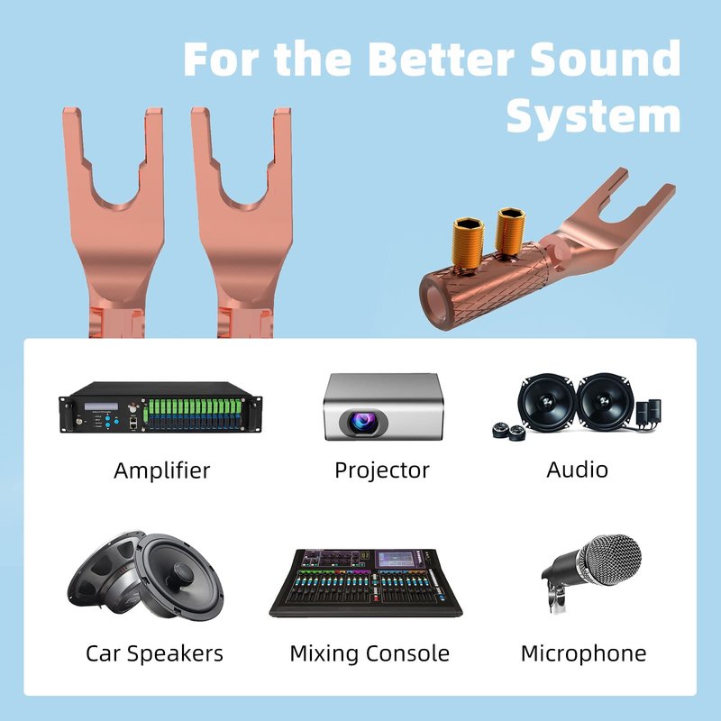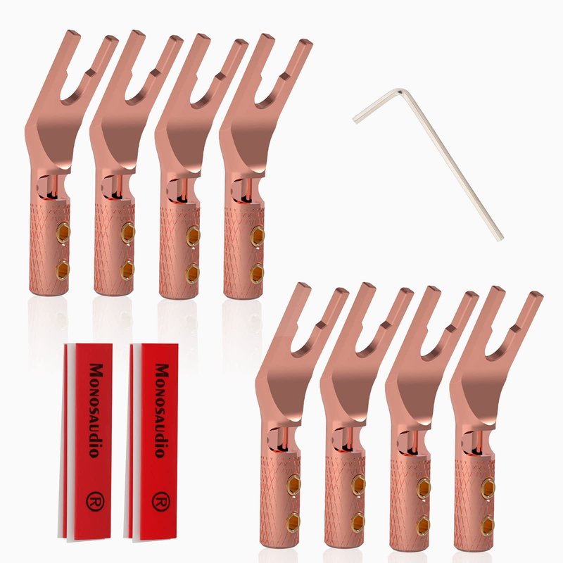 - Pure Copper Conductor- The Monosaudio HiFi speaker spade connectors are made of high quality 99.998% pure copper conductor material, durable, stable performance, long service life, which can minimal signal loss and provide optimal and natural sound.