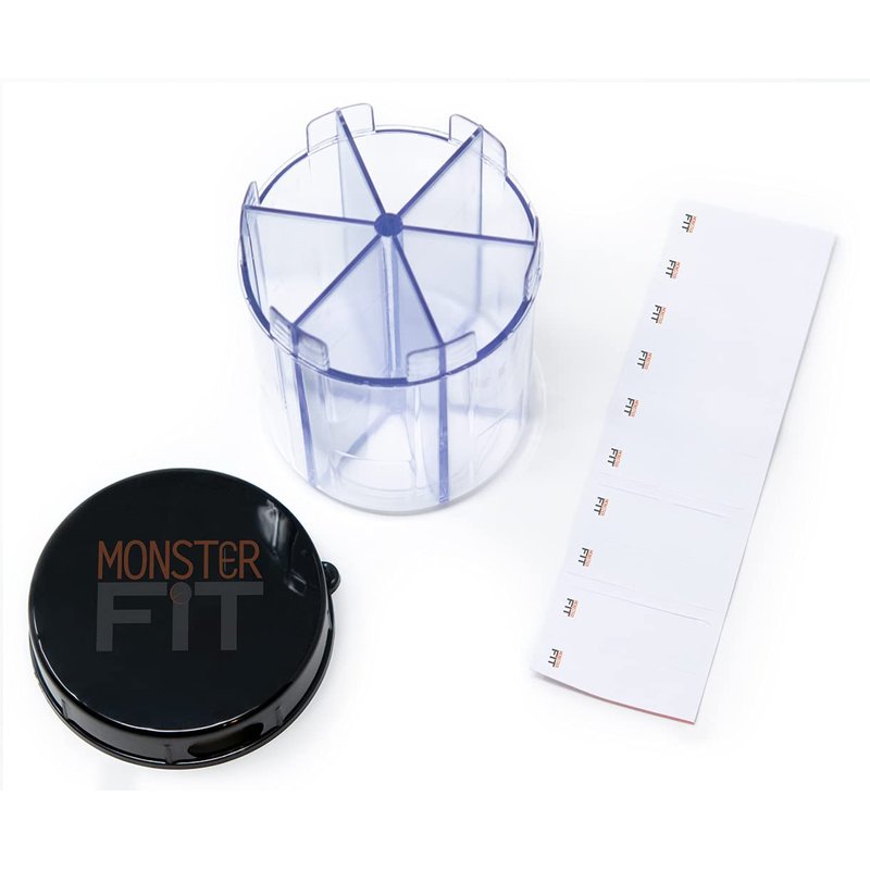 Monster Jr Supplement Pill Dispenser with Labels - Holds Small Medium Medication Vitamins and Easily Dispense from One Container Includes Compartment Labels (Monster Jr - 2 Pack)