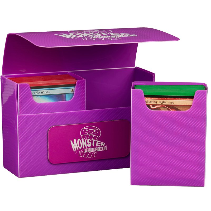 Monster Protectors Magnetic Double Deck Box - Purple, Holds 150 Gaming TCGs, Self-Locking Closure, Compatible w Standard & Smaller Size Gaming Trading Cards, Removable Construction