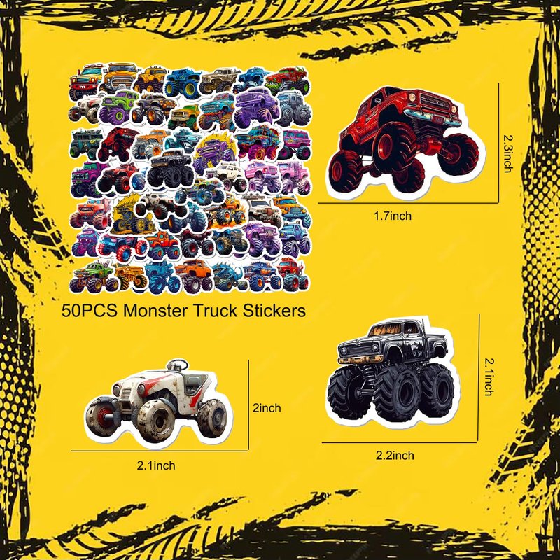 - 【Package Include】1 x Monster Truck happy birthday banners, 1 x Monster Truck banner, 9 x Monster Truck themed hanging swirls, 50 x Monster Truck Stickers, 2Pcs Monster Truck Tableclothes for party decoration.