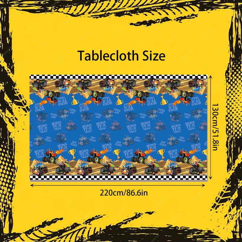- 【Monster truck birthday table covers】Each tablecloth approx 86.6*51.2 inches inches,The classic elements with bright colors will create a monster truck theme atmosphere for your birthday party.