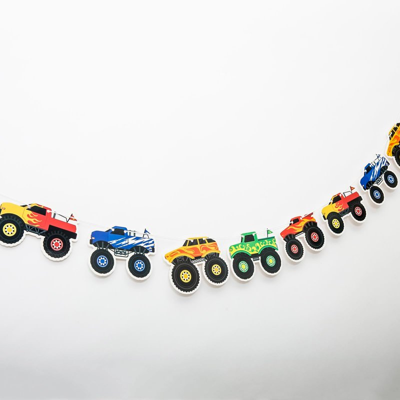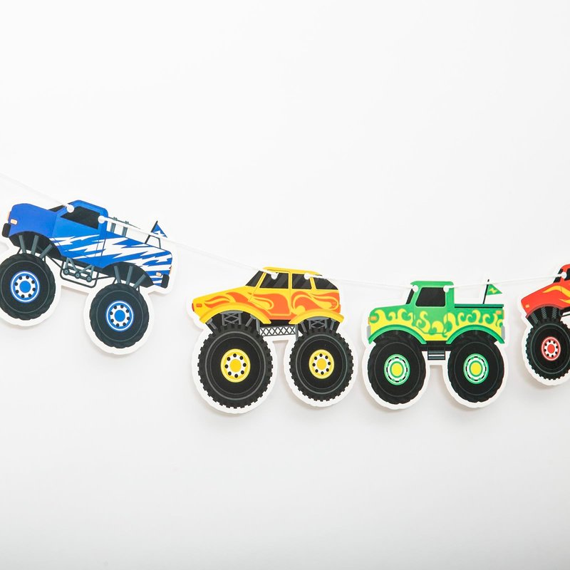 - Rev up the excitement for your little one's special day with our vigorous Banner.Designed to perfectly complement any truck-themed celebration, this eye-catching banner is the ultimate addition to your party decorations.