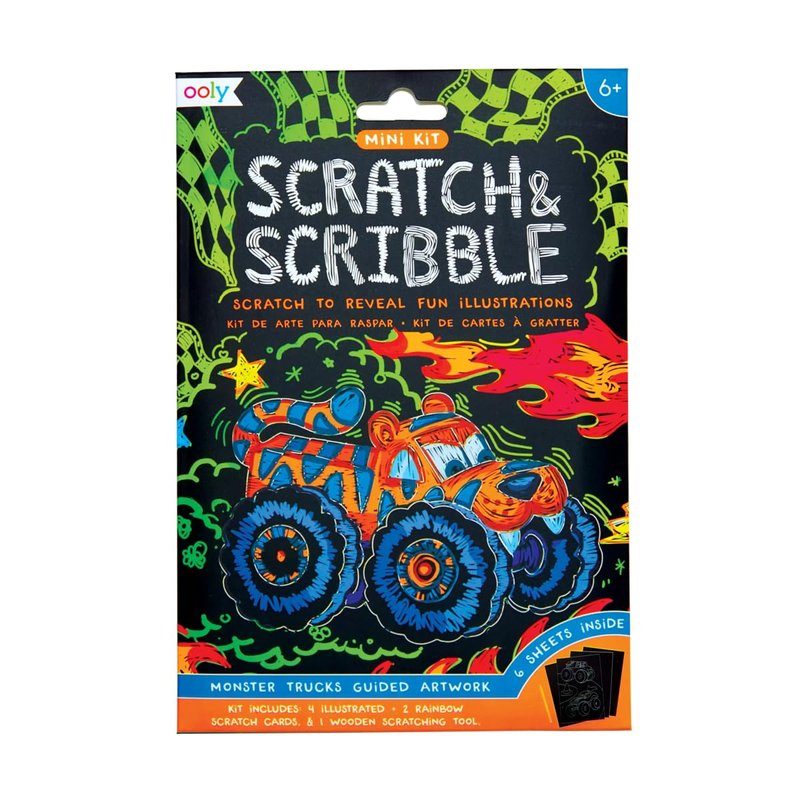 - Travel sized scratch art kit with Monster Truck |4 illustrated scratch cards (4 x 6 inches)|2 rainbow DIY blank scratch cards (4 x 6 inches)|1 wooden stylus – all you need to get started right away|Guided illustrations – easy for anyone to follow even adults!|Suitable for ages 6 and up