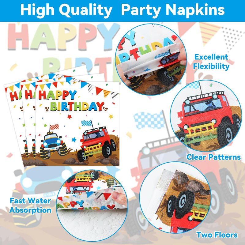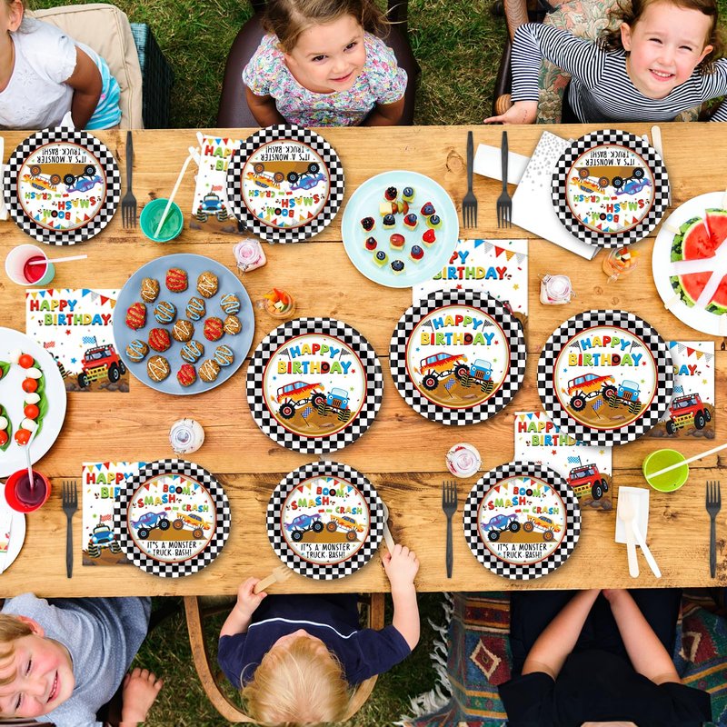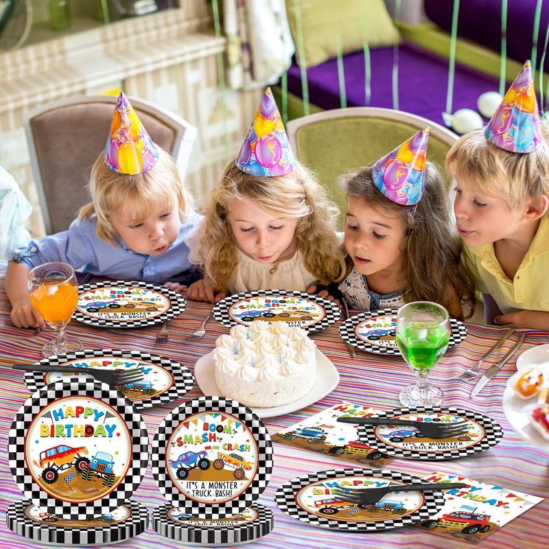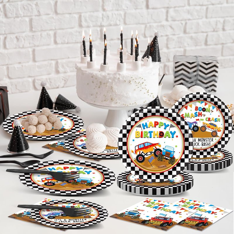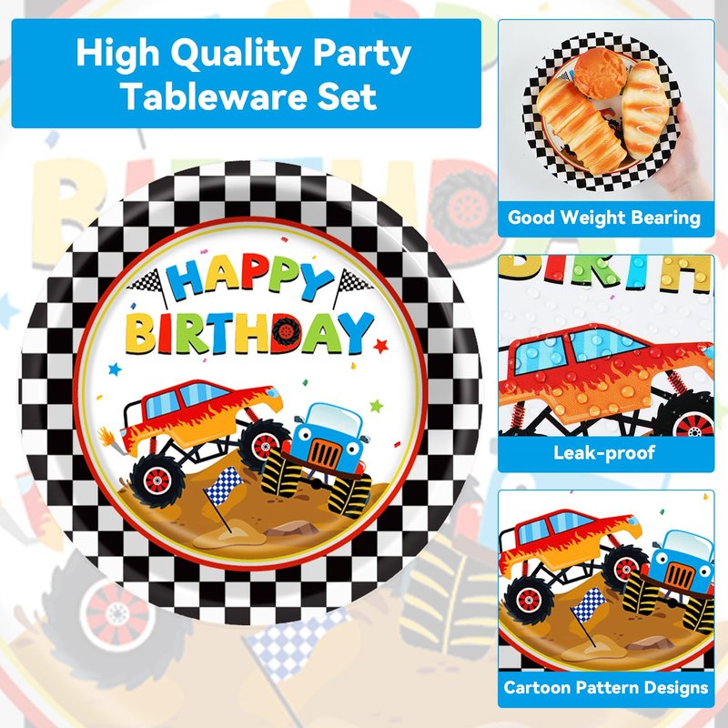 - Great choice: Whether it's a birthday, a game, or a themed party, these monster truck party dinnerware are perfect for monster truck lovers of all ages. Exquisite design and sturdy materials provide guests with an unforgettable experience!