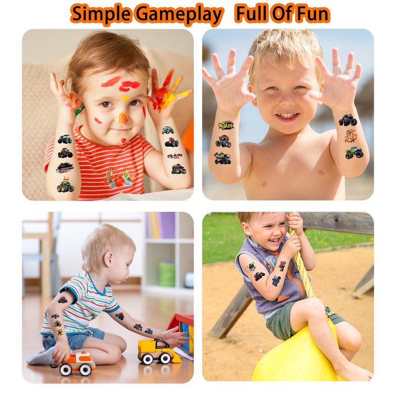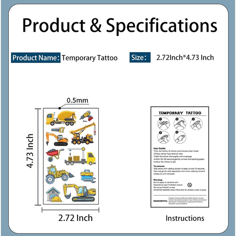 • 【Package Contains】 You will receive 10 sheets of monster trucks and 10 sheets of construciton trucks temporary tattoos. There are 20 sheets with around 180pcs of temporary tattoos in total. Cool party supplies for kids having fun together. The size of each sheet is 4.72inch*2.72inch.