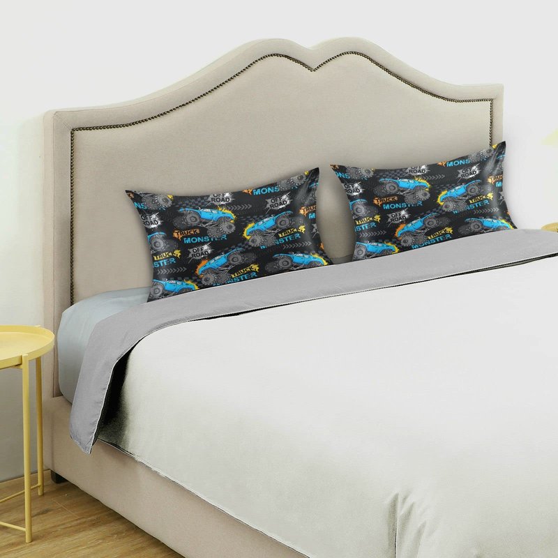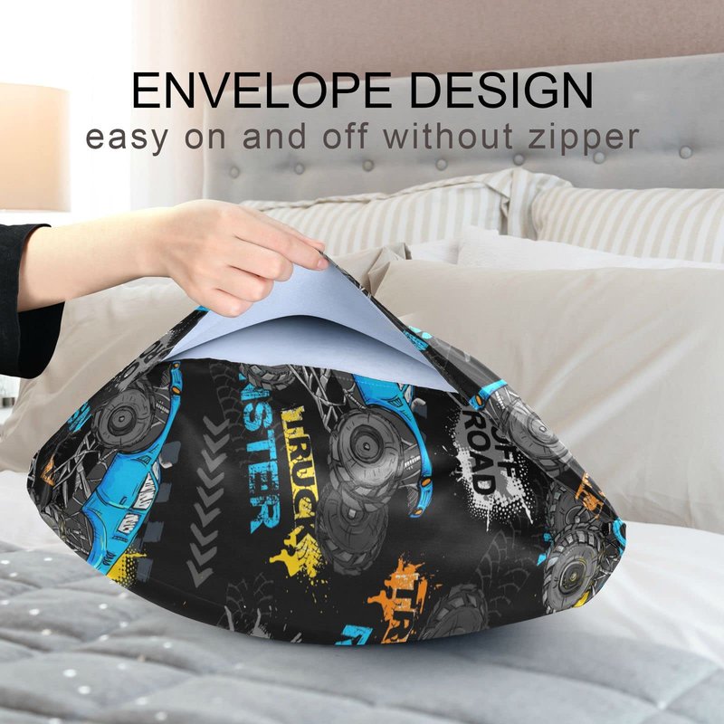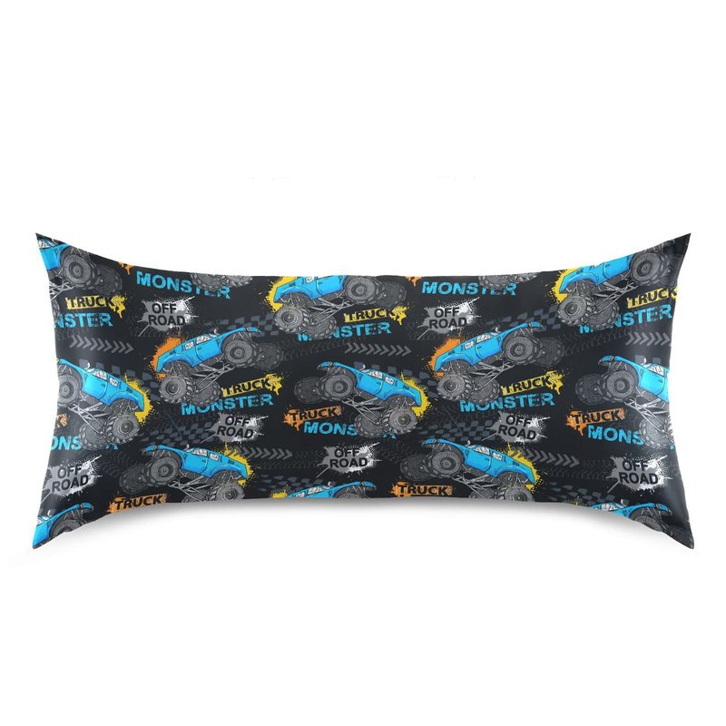Monster Truck Tires Pillow Covers Silk Pillowcase for Hair and Skin Soft Breathable Smooth Cooling Satin Pillowcase Standard Size Pillow Case for Bed