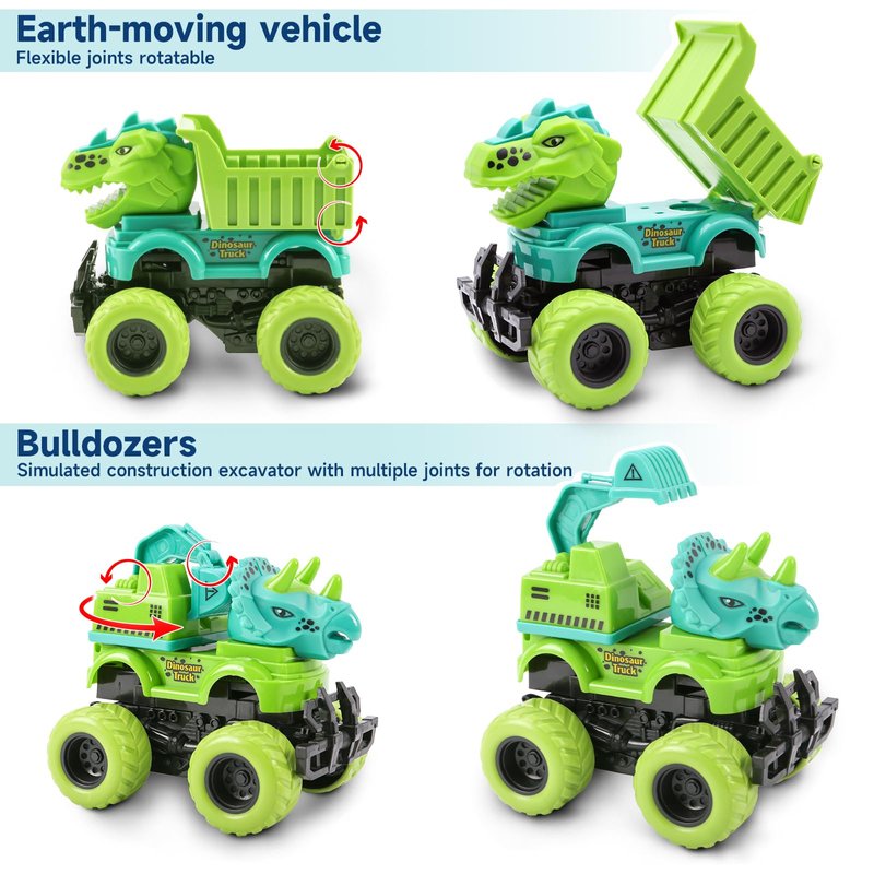 - 【Dinosaur Toys for Kids 3-5】: This dinosaur car all construction arms are movabl, toy trucks can work like the real construction cars to swing, rear dumping, or a tilt action side dump that can attracts the kid's attention and they will know how a real construction car work by playing these toys for boys,Kids can play with them outdoor or in the sandbox, endless engineering fun while digging and bulldozing with monster truck toys