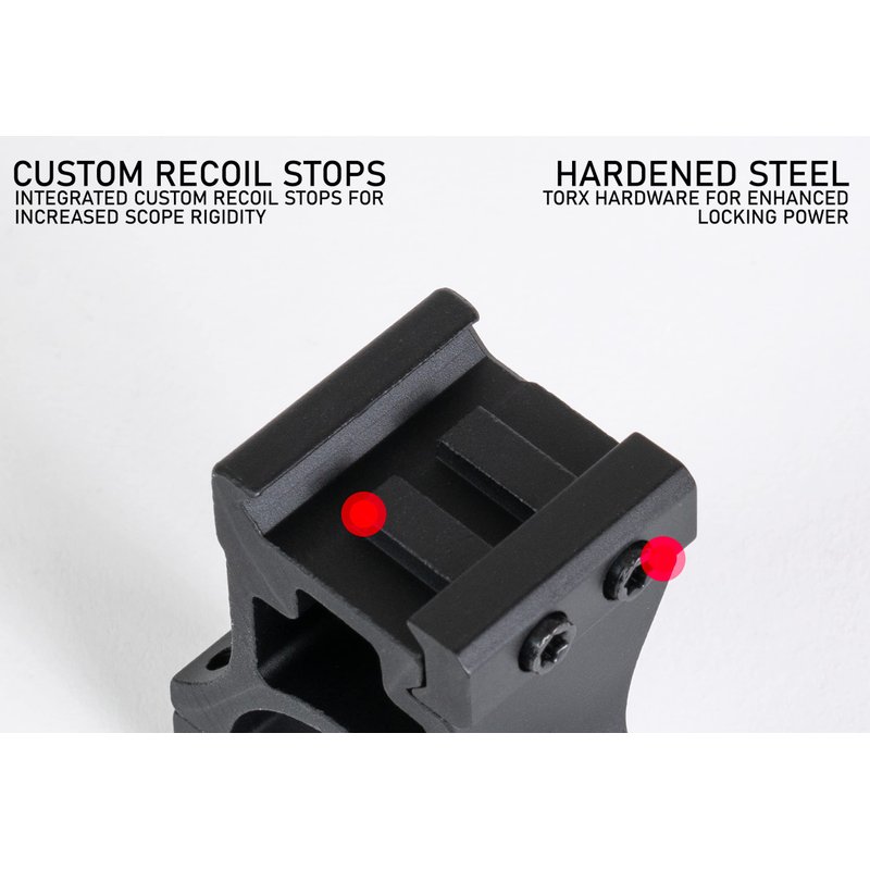 Mount base mechanism comes equipped with custom Picatinny locking bolts that slot seamlessly into your Picatnny rail with zero wiggle - guaranteed to hold zero against the toughest of recoil.