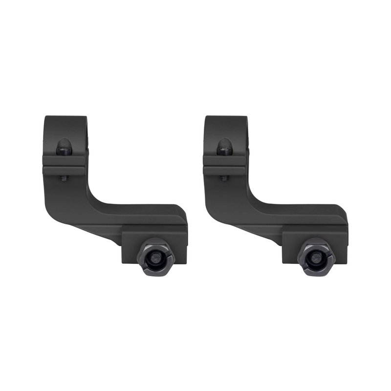 The rings mount to any flat top Picatinny rail equipped rifle. High profile in height, it measures 0.8 inches from the base of the mount to the bottom of the rings. Constructed from aerospace aluminum, the rings are both lightweight and durable. Each ring is 2.25 inches in total length and weighs 2.5 ounces in weight.