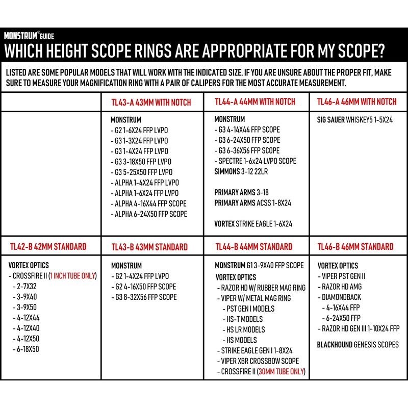 - Available in four sizes - 42 mm, 43 mm, 44 mm, and 46 mm diameter - for compatibility across most scope models and sizes