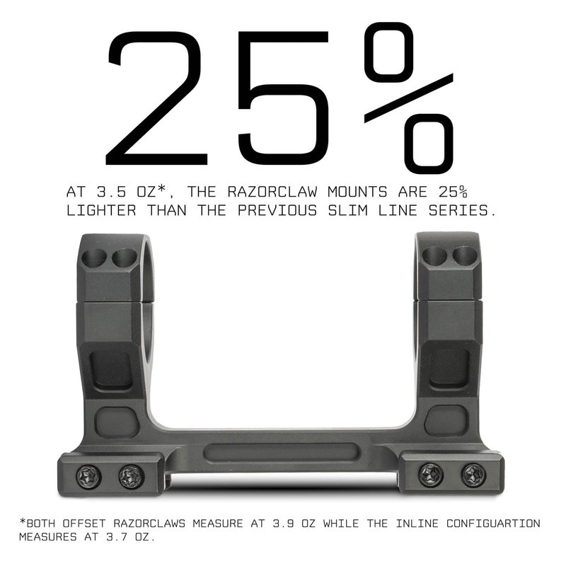 - The Razorclaw is offered in 3 different mount configurations allowing for optimum placement of your optic: Inline Rings, Short Forward Offset Rings, and Long Forward Forward Offset Rings. Available for both 1 inch and 30 mm diameter rifle scope tubes.