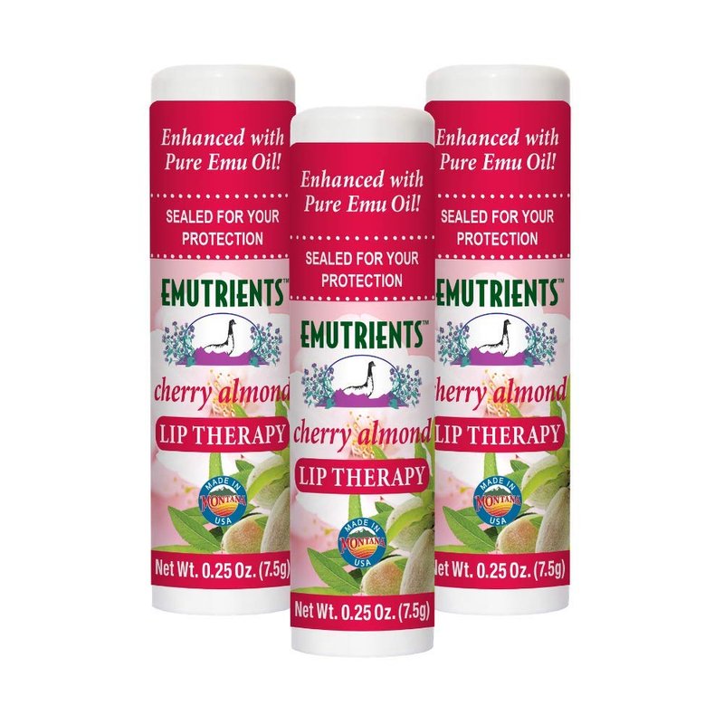 Montana Emu Ranch - Lip Therapy Lip Balm - 0.25 Ounce - Cherry Almond Flavor - 3 Pack - Made with Pure Emu Oil