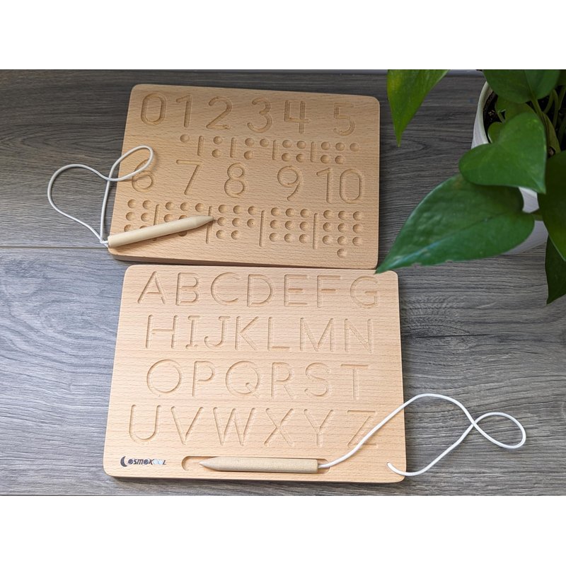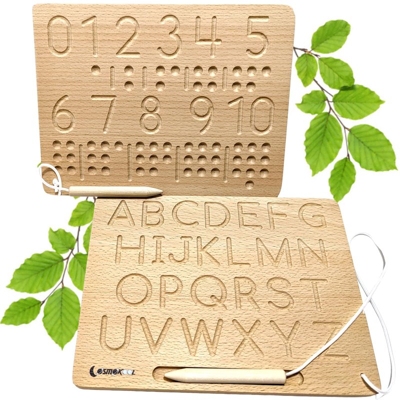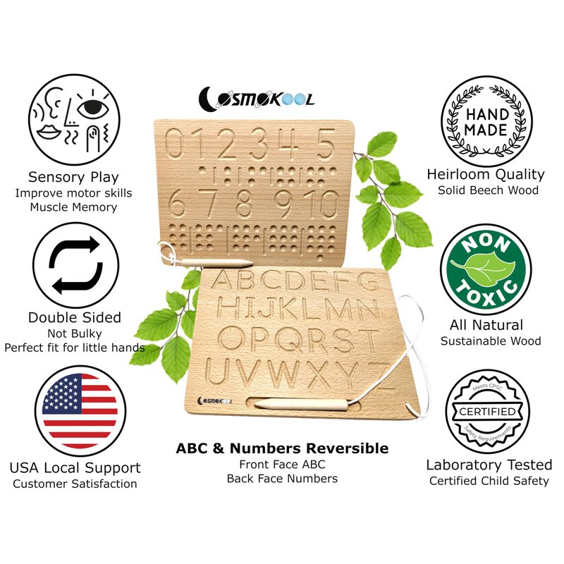 Montessori Alphabet Tracing Board| ABC + Numbers Double Sided with Wooden Pen | ABC Letters| Alphabet Learning Toys 3+ Year Old Toddler Writing Tools Preschool Classroom Must Haves by CosmoKool