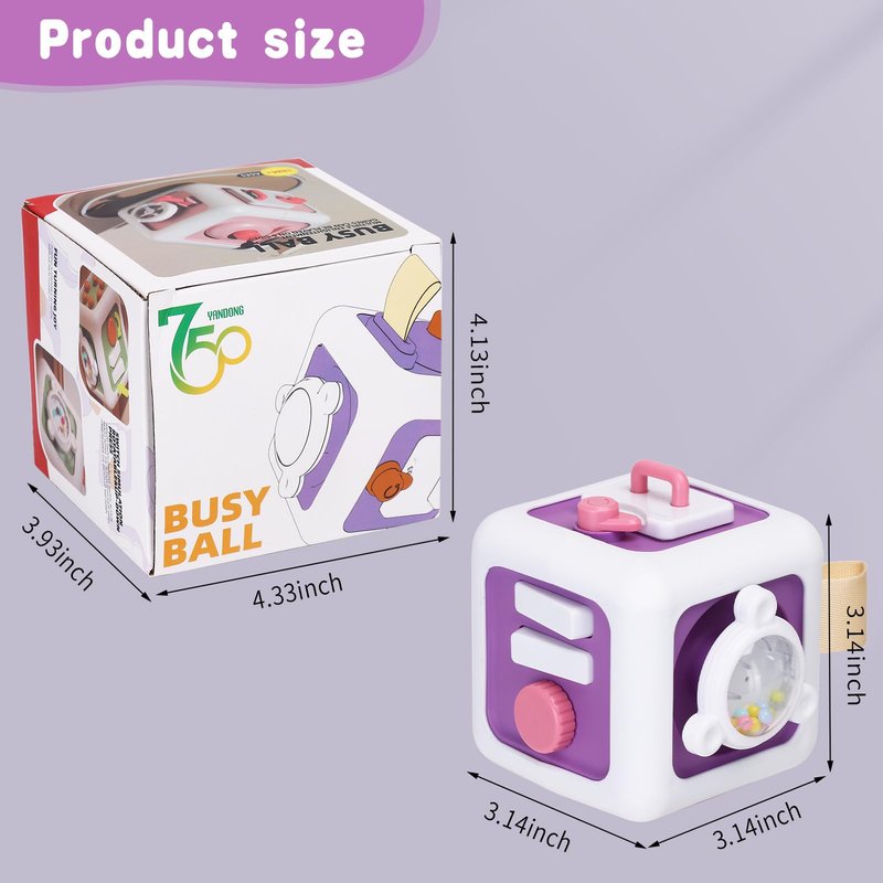 CCBLZLL Toddler Activity Cubes has been sticking to the original philosophy of providing buyers with quality products. In the end, we have everyone's support and trust, just like learning never disappoints anyone. Every learning beckons a story, every explorer, a trusted companion. That's where CCBLZLL steps in. Born from a passion for the great Montessori educational toys, we specialize in crafting your perfect educational partner. CCBLZLL Busy Cube for Toddler Product: Product size : 4" (L) x 4" (W) x 4" (H) Box size : 5" (L) x 5" (W) x 5" (H) Product weight: 0.7lbs Material: ABS Assemble: No assembly required, Ready to use. Activity Cube for Toddlers 3 Easy to Carry Our montessori Activity Cubes has Compact size, excellent portability makes it become a great toddler travel activities toys, including road trips/airplane/activities/picnics/vacation/camping... anywhere that will keep your child busy and quiet during the long journey. Colorful and variety of exploring options can keep kids fully engaged for hours of play.