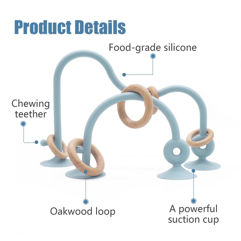 The high chair toys designed to improve a child's concentration and relieve boredom and irritability, the montessori Educational Toy is a suction toy that can easily attach to high chairs, smooth tables, windows and bathtubs, providing a safe, interactive play experience (if the table is dusty, it may affect the suction, So please try to keep the surface smooth and clean) 2.Our products are made of food grade silicone material and oakwood loop ring, smooth and non-toxic, it can ensure the safety of children when playing, and can also be used as dental toys. 3. Promote the development of skills: Our toys are designed to stimulate children's fine motor skills and hand-eye coordination, improving children's cognitive abilities. 4. Portable and lightweight design, it can be easily put in the backpack, easy to carry when going out.