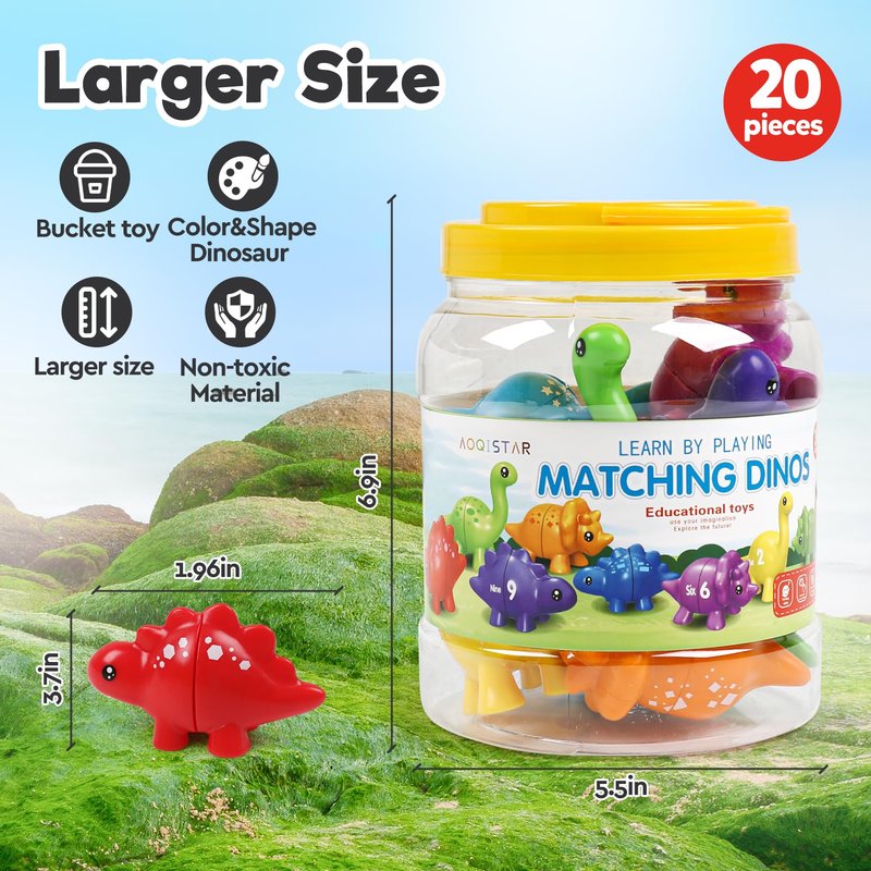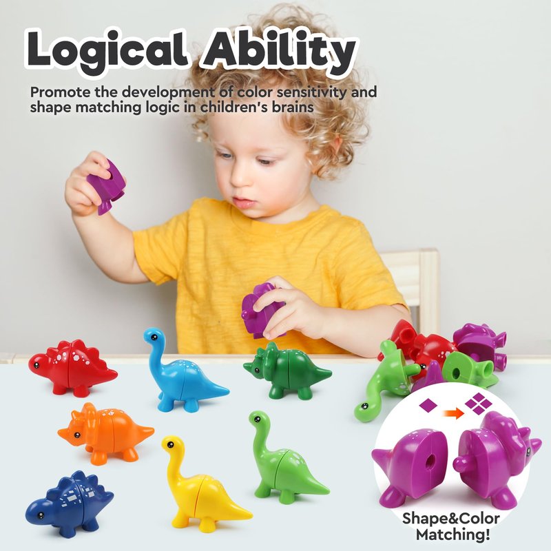 - [Toddlers Sorting & Matching Learning Toy]: Quaility, multi-color and hand-size dinosaurs with smooth connector makes it perfect for small hands to grip, match and snap them together easily. For preschoolers1-5 year old, It's more a meaningful learning activity than a playful toy itself.