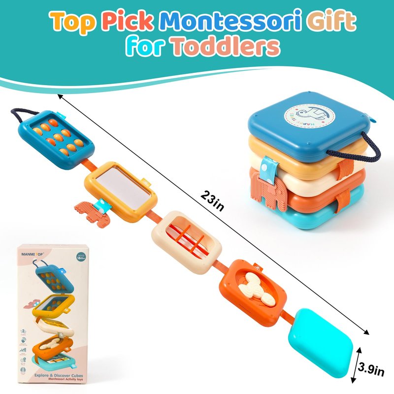 Montessori Toys for 1 2 3 Year Old Girls Boys, Explore Discover Activity Cube Toys, Christmas Stocking Stuffers for Kids, Travel Sensory Toys for Toddlers 1-3 Learning Fine Motor Skills Baby Toys Gift