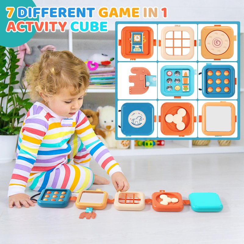 - Christmas Montessori Toys for Toddlers 1 Years: This interactive busy cube features seven learning activities, including teething toy, funhouse mirror, animal clock, carrot puzzle, rotating activity, spinning activity, numbers. Well made Montessori toys for 1 year old boy girls. Our innovated busy cube or busy cube for toddlers has 7 pages to play, featuring multiple varieties of toddler activities, can keep your little one busy for hours