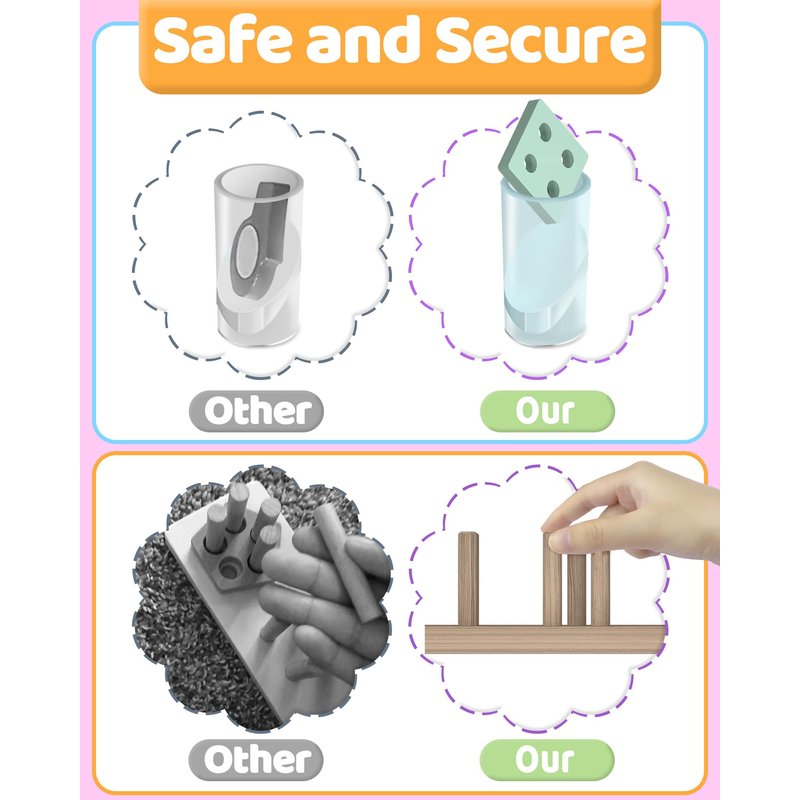 - Safe and High Quality: Toddler toys include high quality, chunky wood blocks to ensure small hands can easily grasp the pieces and complete stacked puzzles. Montessori toys for 1 2 year old have smooth edges, strong stakes, blocks are coated food safe paint for your 1 2 year old boys girls to play safely. Girls and boys will love this large, thick toddler toy that is easy to handle and assemble.