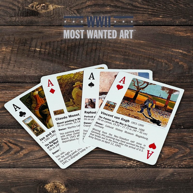 - UNIQUE DECK: Deck of 52 poker cards and two jokers, each depicting a different artwork or cultural object that has been missing since during World War II. Experience a one-of-a-kind journey through history and art with our WWII MOST WANTED ART Deck of Poker Playing Cards.