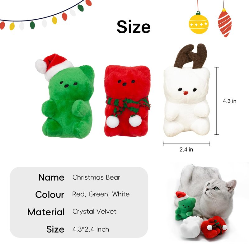- Holiday themed Bear Plush Toy: Christmas limited edition toy from Mooipur. Celebrate this Christmas in this squeaky toy with your furry baby. Our plush bear can keep your dogs and cats occupied for the entire season.
