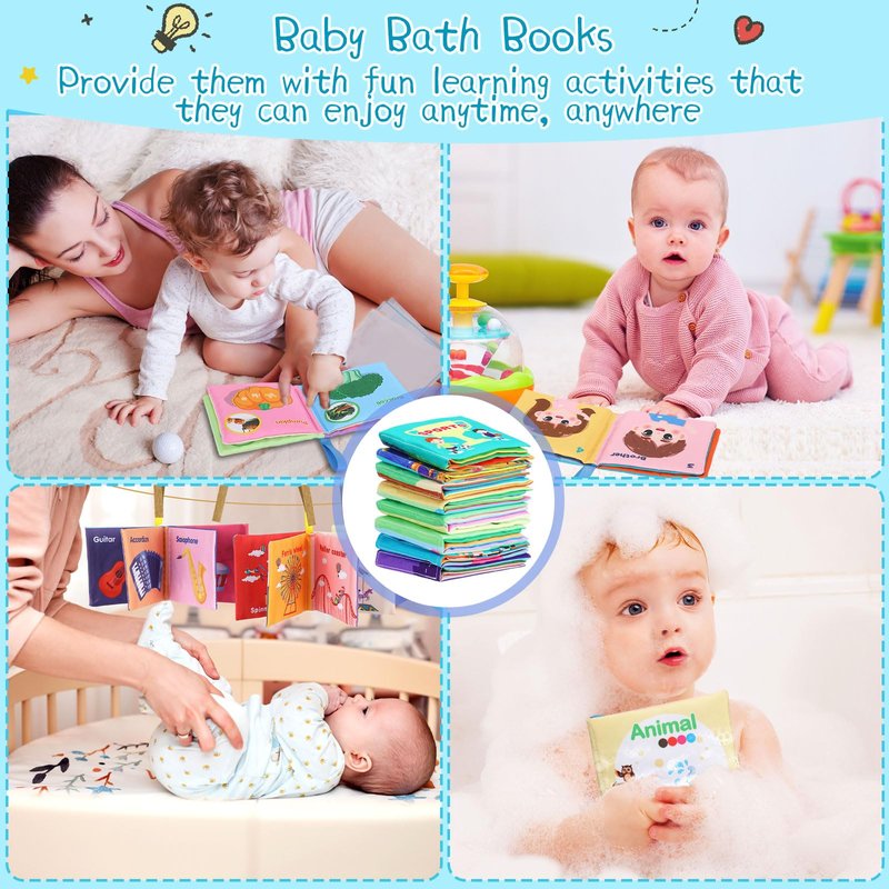 - Soft Baby Bath Books: the baby crinkle book is safe to handle, with no sharp edges or hard components; Each piece is well designed for the reliable quality ensuring your baby's safety; More than just books to read, cloth books are important educational resources for young children; They stimulate language development, facilitate categorization, foster sensory exploration, improve visual recognition abilities, prepare children for reading, encourage communication, and stimulate the imagination