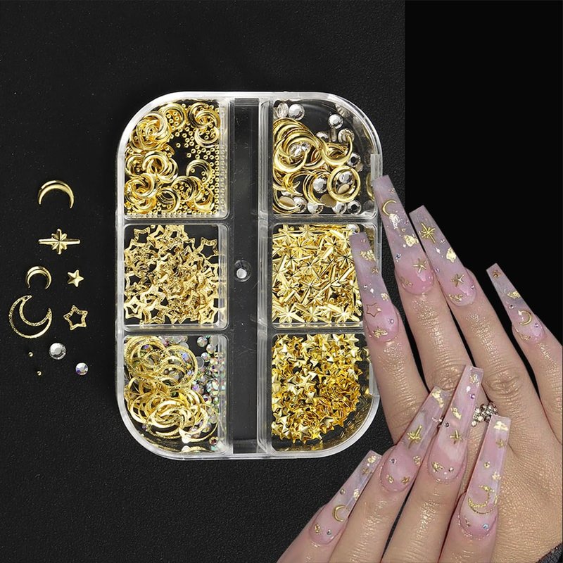 - 【3D Gold Nail Charms】 You'll get 1 box bling moon star nail studs,sufficient quantity and rich styles can meet your various needs in DIY nail art or any other handmade projects.NOTE: The glue is not included.