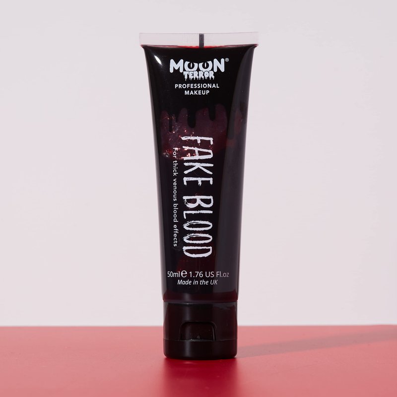 The Moon Terror Pro FX Fake Blood provides a realistic super thick consistency. Itβs quick drying on the skin, smudge proof and does not stain.