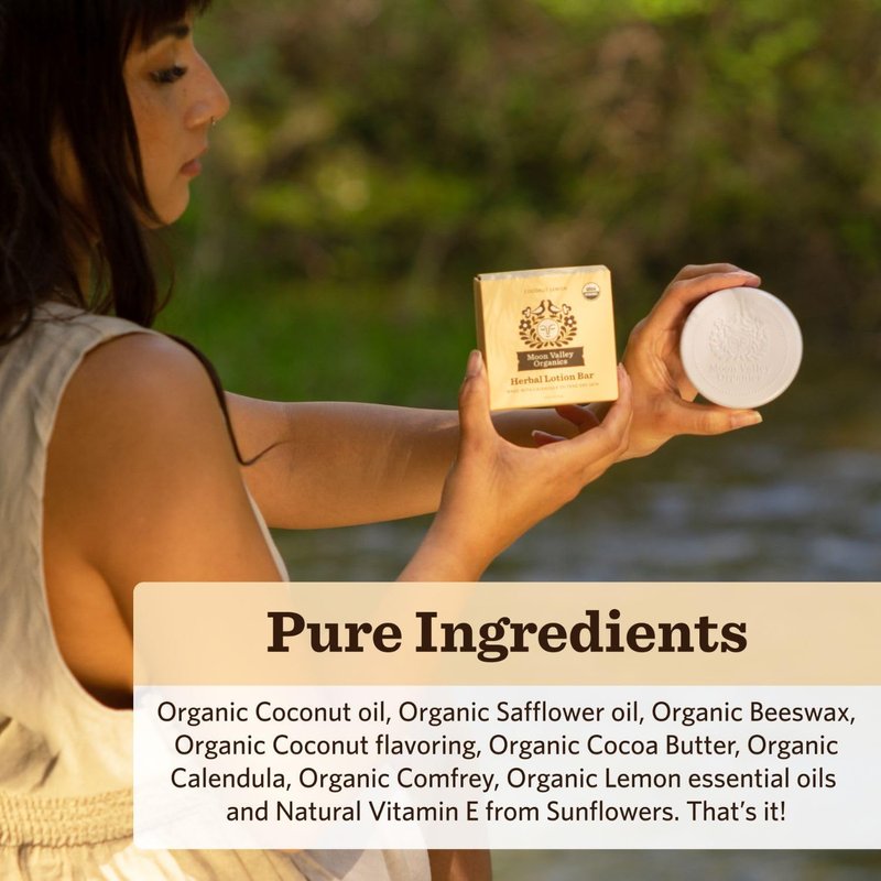 Moon Valley Organics Herbal Lotion Bar in Coconut Lemon, Moon Melt Bar, Calendula and Comfrey, Beeswax, Heal and Restore Chapped Skin, Soothing