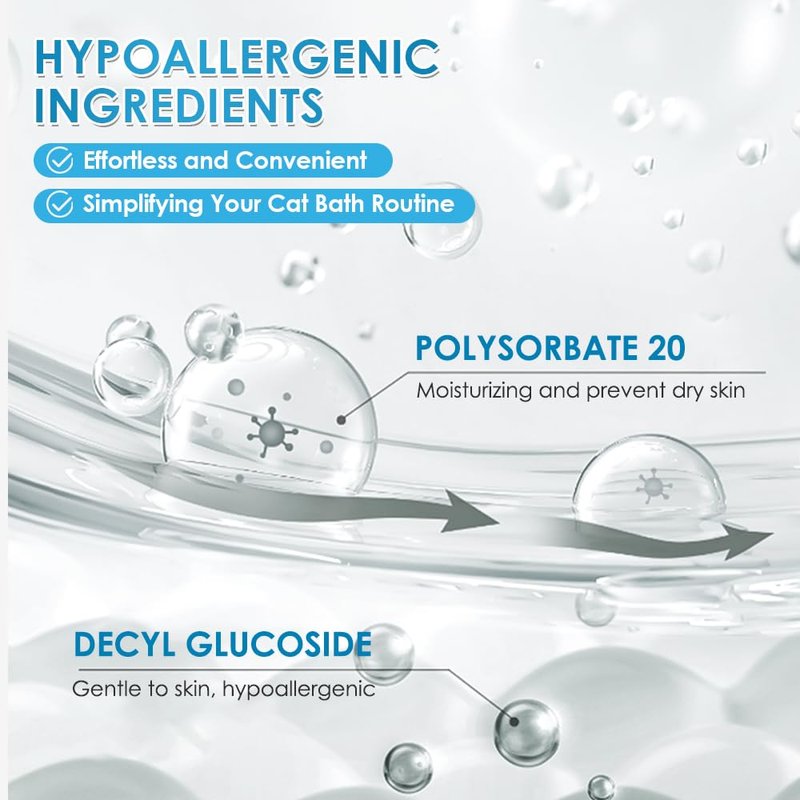 - πΊ EASY TO USE - Our bottle uses a quiet, nonthreatening hand pump. Unlike other shampoos that use a spray action that sends cats running for their lives, our solid easy-to-apply foam makes every bathing a dream. Simply apply the foam, massage, and dry them.
