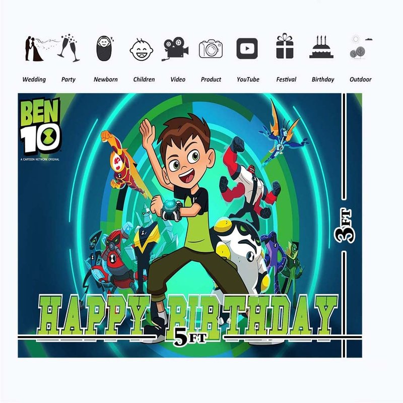 Moonlight Studio Happy Birthday Ben 10 Backdrop for Boys 5x3 Vinyl Ben 10 Birthday Party Decorations Banner for Kids Cartoon Science Fiction Ben 10 Background
