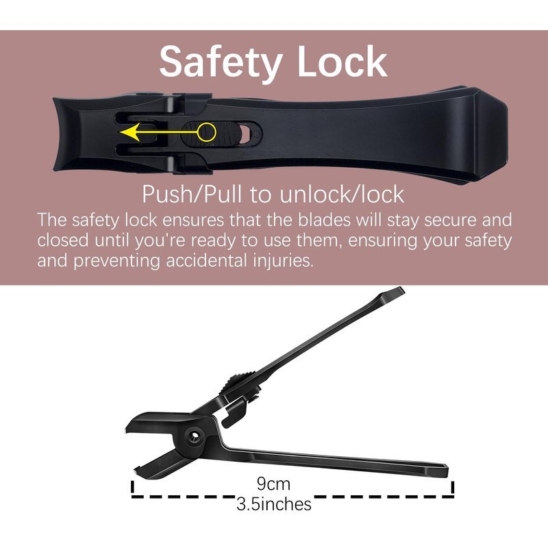 - Safety lock: Our nail clippers feature a safety lock mechanism that securely holds the blades in place while not using. This prevents accidental opening of the clippers and ensures that your nails are protected at all times.
