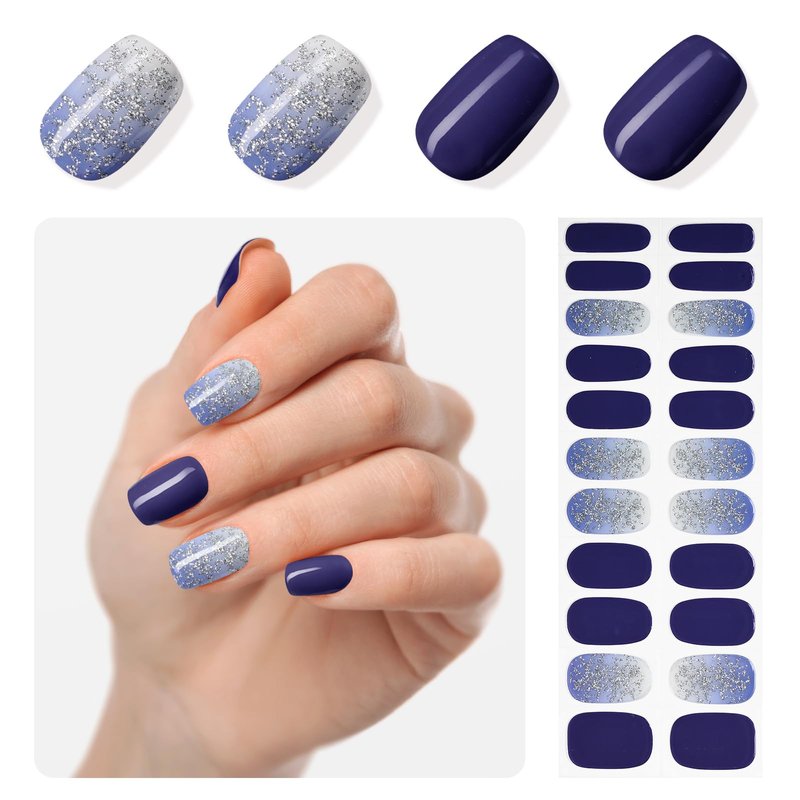 MOOYIYAN Semi-Cured Gel Nail Strips|Uv Free Nail Stickers|22 Pcs Gel Nail Wraps|Long-Lasting Two Weeks and Easy to Apply&Remove|with 2 Prep Pad,1 Nail File&1 Wooden Stick,Dazzle Blue