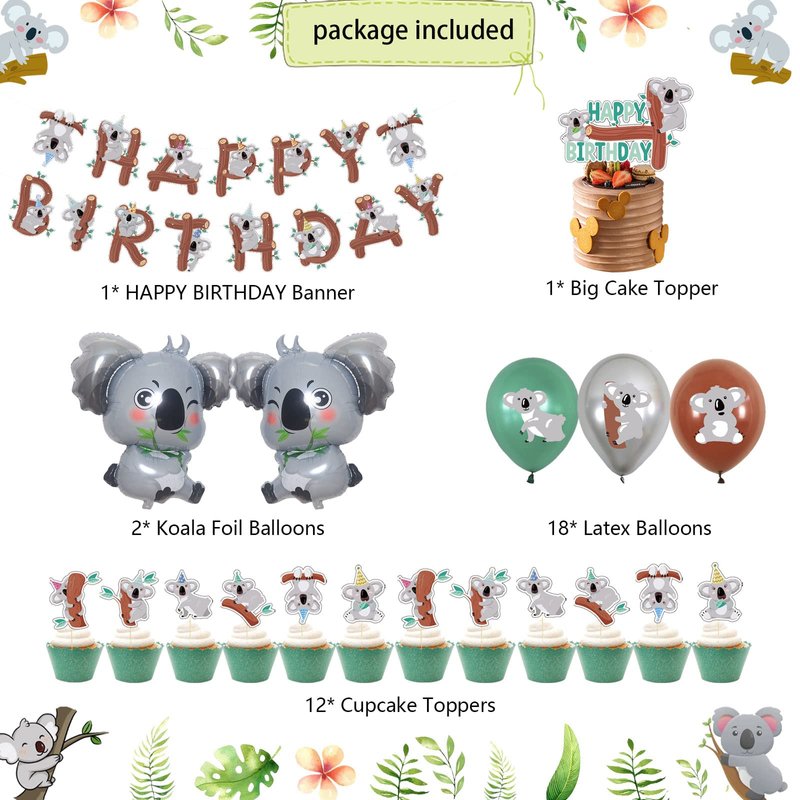 • 🐨【Packsge Include】-1* koala HAPPY BIRTHDAY banner,2* koala foil balloons,1* koala cake topper,18* cute latex balloons,12* koala cupcake toppers.Our koala decorations add a unique experience to your kid’s party. to help you crate a wonderful and special koala birthday party.