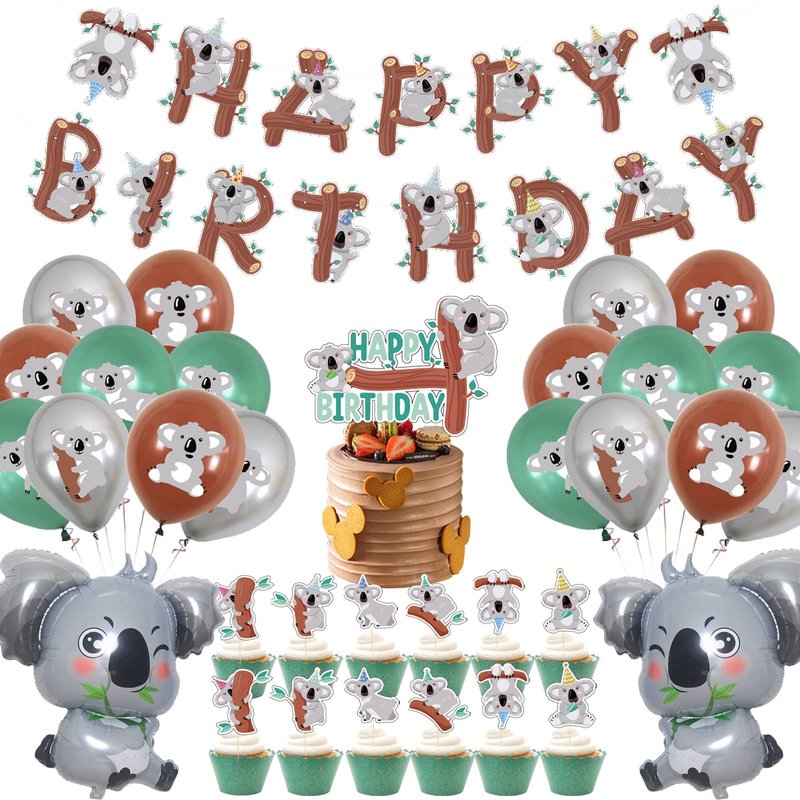 Moptrek Birthday Party Decorations Supplies with Koala Birthday Banner,Koala Foil and Latex Balloons,Cake Topper and Cupcake Toppers for Kids Koala Themed Birthday Party or Baby Shower Decorations