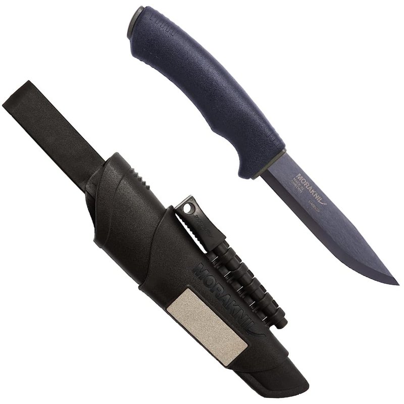 Morakniv Bushcraft Survival BlackBlade™ Fixed-Blade Knife with Carbon Steel Blade with Sheath and Fire Starter, Black, 4.3 Inch