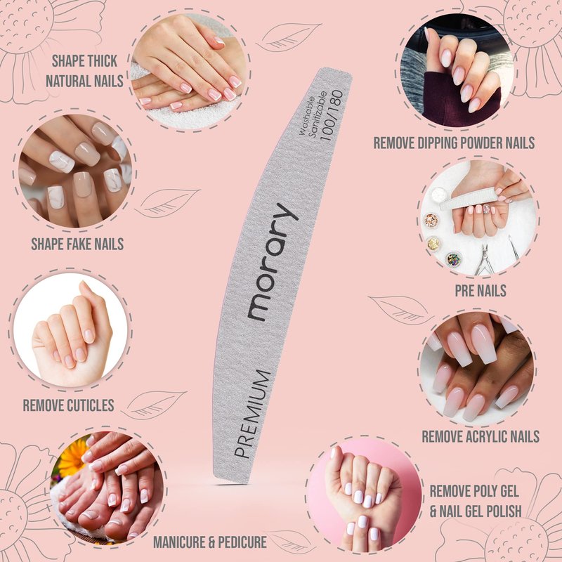Morary Nail File 100/180 Grit Nail Files for Natural Nails Acrylic Nails Double Sided Emery Board Fingernail Files Limas para Acrilico 12 Pack