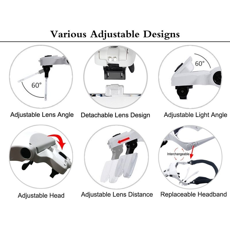 - 【Various Adjustments of Light and Lens Angle】- Our head magnifier offers a variety of adjustment options, so you can get the perfect angle of light and lens for your work. Plus, the lens can be moved back and forth to adjust the distance for optimal focus range. With all these adjustment options, you'll have complete control over your work!