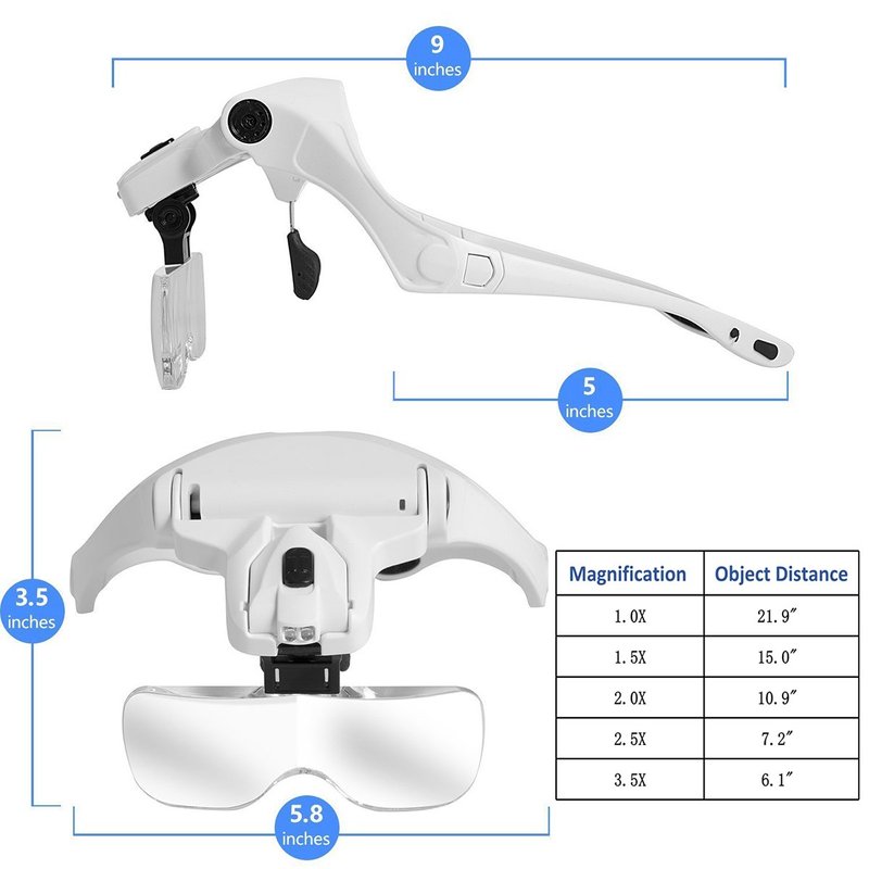 - 【Enjoy Hands-free Magnification and Illumination】- Whether you're working on a DIY project, repairing small electronics, or pursuing a hobby that requires precision, our Headset Magnifier is the perfect tool for you. With its portable and compact design, you can take it with you wherever you go and enjoy hands-free magnification and illumination. Powered by 3AAA batteries(Not Included).