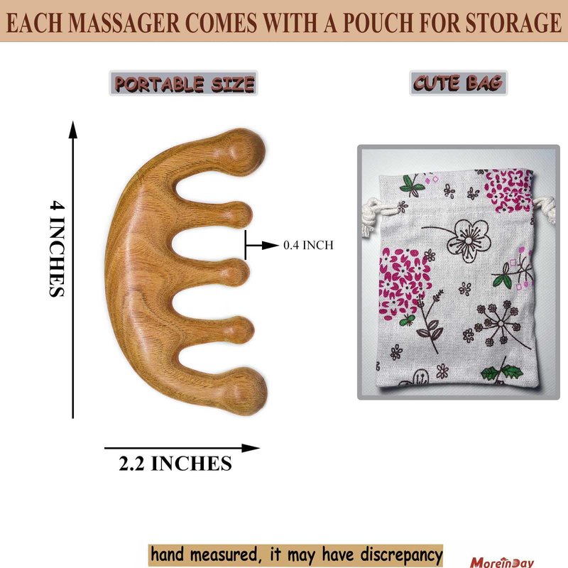 Moreinday 2 Pack Wooden Scalp Massager Hair Growth Comb, Massage Comb for Scalp Relax, Wood Head Massager Scalp Gua Sha Comb for Women Men - Green Sandalwood