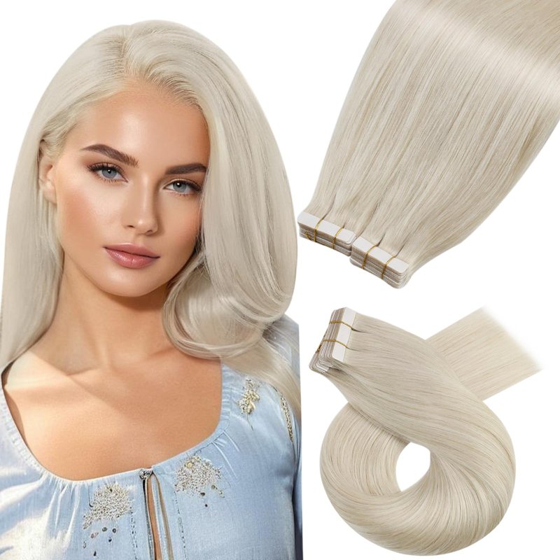 Moresoo Tape in Hair Extensions Blonde Human Hair Extensions Glue in Platinum Blonde Tape in Extensions Real Human Hair Invisible Hair Extensions Tape in Real Human Hair 18 Inch #60 40pcs 100g