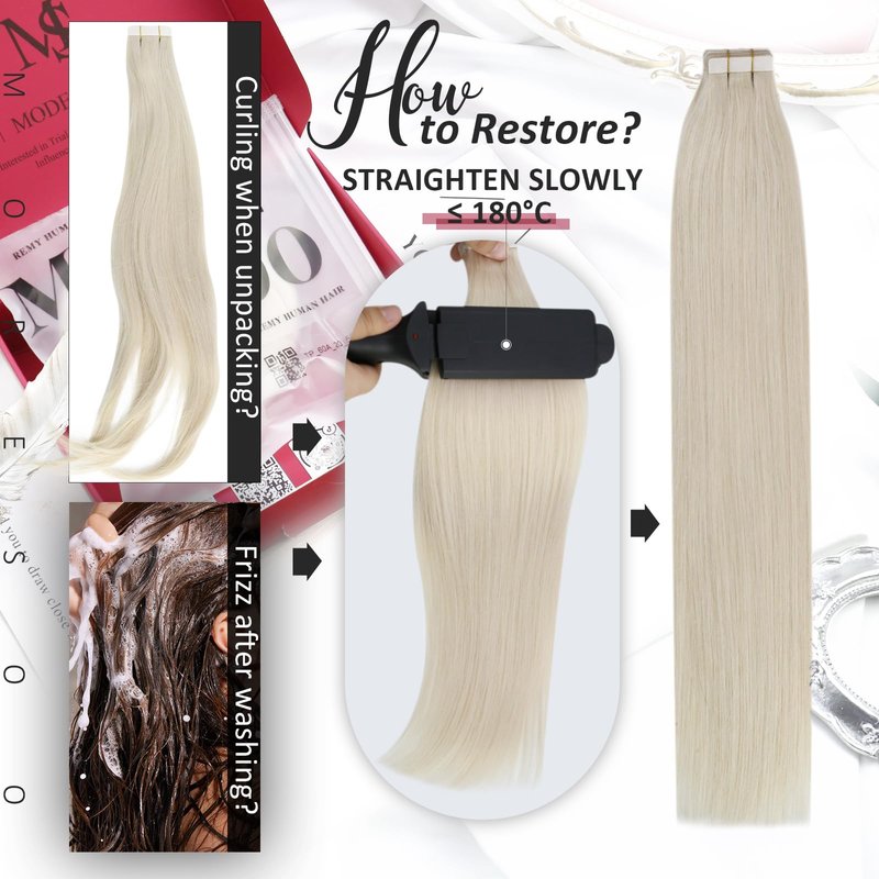 5.High quality tapeMoresoo Tape Hair Extensions Made of high quality American white Tape for longer life and greater adhesion.Careful care extends the life span to 2-18 months.