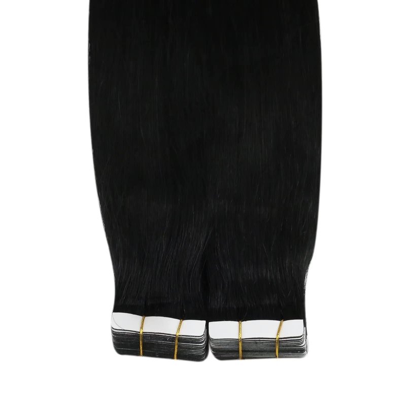 Moresoo Tape in Hair Extensions Human Hair Black Hair Extensions Invisible Tape in Extensions Real Human Hair Jet Black Tape in Human Hair Extensions Silky Straight Hair 20 Inch #1 40pcs 100g